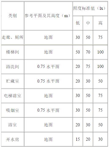 共用场所照明的照度标准值