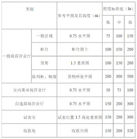 商店建筑照明的照度标准