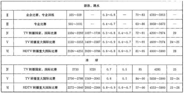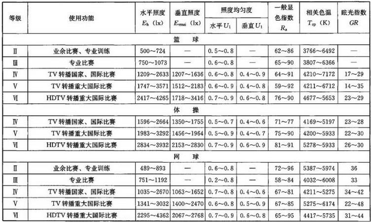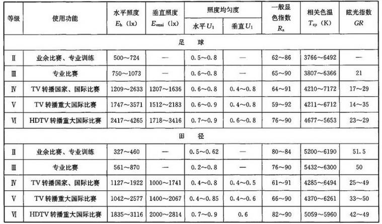 体育场灯光照度标准: